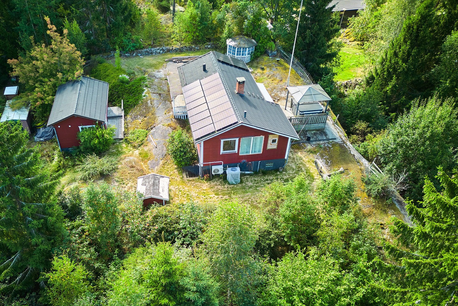 Huset ligger uppe på en kulle och har ett mycket ogenerat läge. Tomten är stor med stora möjligheter för den som vill låta fantasin flöda. Fastigheten bjuder på ett bostadshus med altan i soligt läge samt ett spabad. En gäststuga med förråd, källare under huset, en stor uppfart med möjlighet för både garage och carport och fantastiskt fin rododendron häck.