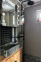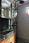 Modernt badrum i anslutning till master bedroom. Wc, handfat och dusch.