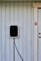 Ett stort garage med generös förvaring och praktisk laddbox för elbil.