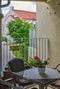 Föreningens fyra huskroppar ramar in en blomstrande innergård med grillplats.