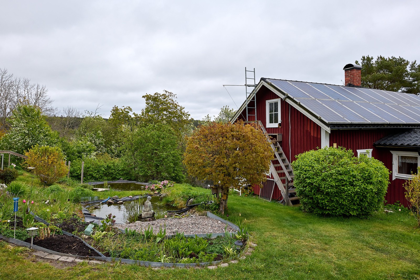 Intill bostadshuset ligger en vacker gäststuga med eget badrum, kök, fina sovrum, kakelugn och vedspis. En superbra plats för långväga gäster eller som en bostad att hyra ut. På gäststugans tak finns det solceller som hjälper till med elförbrukningen.