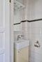 Helkaklat badrum med badkar där utsikten över sjön kan avnjutas. Därtill wc, handfatskommod och dusch.