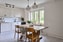 Tidsenligt kök med gott om förvaring bakom ljusa köksluckor. Maskinell utrustning i form av spis, köksfläkt, diskmaskin, fullstor kyl och frys samt vinkyl. Naturlig matplats intill fönster. Ljusa ytskikt och laminatgolv.