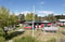 Tomt med gräsytor, berg i dagen samt flaggstång