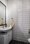 Längre in i hallen gästtoalett med wc och handfat.