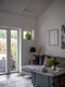 Köket är både trevligt och stilrent, med gråa skåpluckor, mörk bänkskiva och stänkskydd i glas. En färgstark tapet i orange och svart ger utrymmet karaktär, samtidigt som den smarta planlösningen erbjuder mycket arbetsyta och förvaring. Här finns moderna vitvaror och intill köket finns en rymlig matplats som rymmer många gäster. Denna del av huset kan enkelt byggas om till ett extra sovrum om så önskas. Köket har access till en uteplats med morgonsol, perfekt för att njuta av dagens första kaffe.