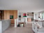 Vardagsrum och matsal flödar av ljus från höga fönster längs hela baksidan, och vardagsrumsdelen har platsbyggd bokhylla och tv-bänk. Matsalsdelen har utgång till den långsträckta balkongen, med plats för många vilstolar på rad och optimalt solläge mot söder och utsikt över baksidans trädgård.