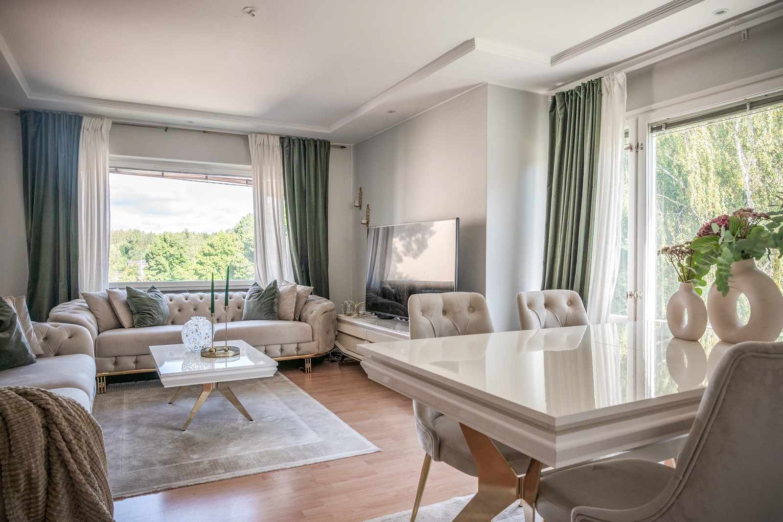 Öppen och ljus femrumslägenhet med naturnära, barnvänligt och lugnt läge