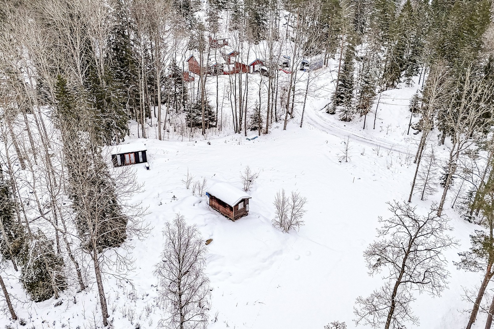 Tomten är belägen i en charmig vägkorsning och har ett öppet, inbjudande uttryck. Samtliga träd är fällda vilket ger fina ljusförhållanden, marken är paddad och här finns både grusade ytor samt gräsmatta på ena sidan – en mycket bra grund för vidare planering och byggnation. Läget är ostört och privat, med skogen som granne och ett lugn som sällan erbjuds.