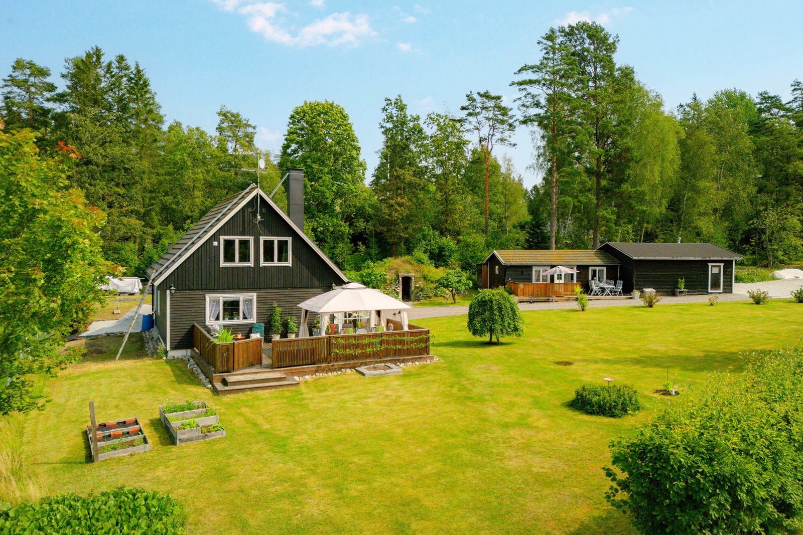 Två hus-dubbla möjligheter Huvudhus och gästhus på stor, plan tomt med garage och uppställningsyta!