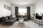 Det rymliga och ljusa vardagsrummet har en stilren och harmonisk inredning med en modern touch. Vita väggar och ett ljusgrått golv skapar en luftig och inbjudande känsla, medan stort fönster släpper in rikligt med naturligt ljus och förstärker rummets rymd.