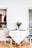 Ljust vardagsrum med parkettgolv och vitmålade väggar. Här finns plats för både soffa och arbetshörna. Utgång till stor uteplats mot öster.