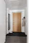 Klinkergolv och ljust målade väggar. Förvaring i garderober.