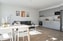 Ljust och lätt möblerat vardagsrum i öppen planlösning mot köket, parkettgolv och målade väggar. Här finns det stora fönsterpartier och utgång till den härliga balkongen.