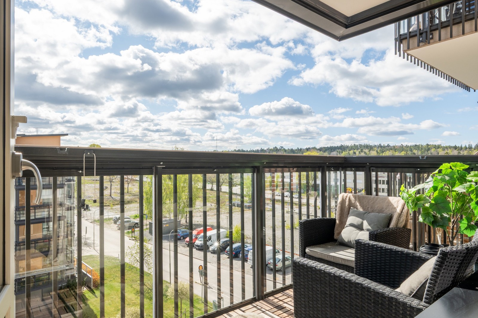 Några minuters promenad från Huddinge centrum. Alltså tillräckligt nära för att du enkelt ska kunna utnyttja pendeltåget, restaurangerna och butikerna när du känner för det. Och tillräckligt långt bort för att du ska ha det lugnt och grönt hemma. Ett tips: 10 minuter bort finns sjön Trehörningen med badplats och blåbärsskogar.
