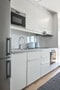 Här möts du av stilrena materialval, genomtänkta lösningar och ett modernt kök med allt du behöver i ett kompakt men mycket trivsamt format. Vardagsrummet erbjuder plats för både soffa och matbord. Badrummet är fräscht och helkaklat med bekvämligheter som dusch och tvättmöjligheter.