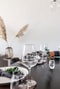 Matplats med plats för matgrupp. Köket ansluter till det generösa vardagsrummet i en öppenplanlösning.