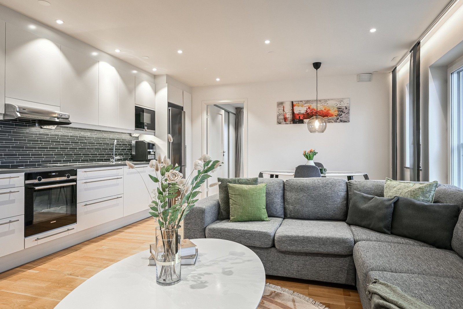 Denna härliga bostad har en öppen planlösning med flera fönster som låter ljuset flöda fritt genom rummen. Lägenheten erbjuder ett kök med stil och gott om förvaring.