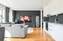 Matplats med plats för matgrupp. Köket ansluter till det generösa vardagsrummet i en öppen planlösning.