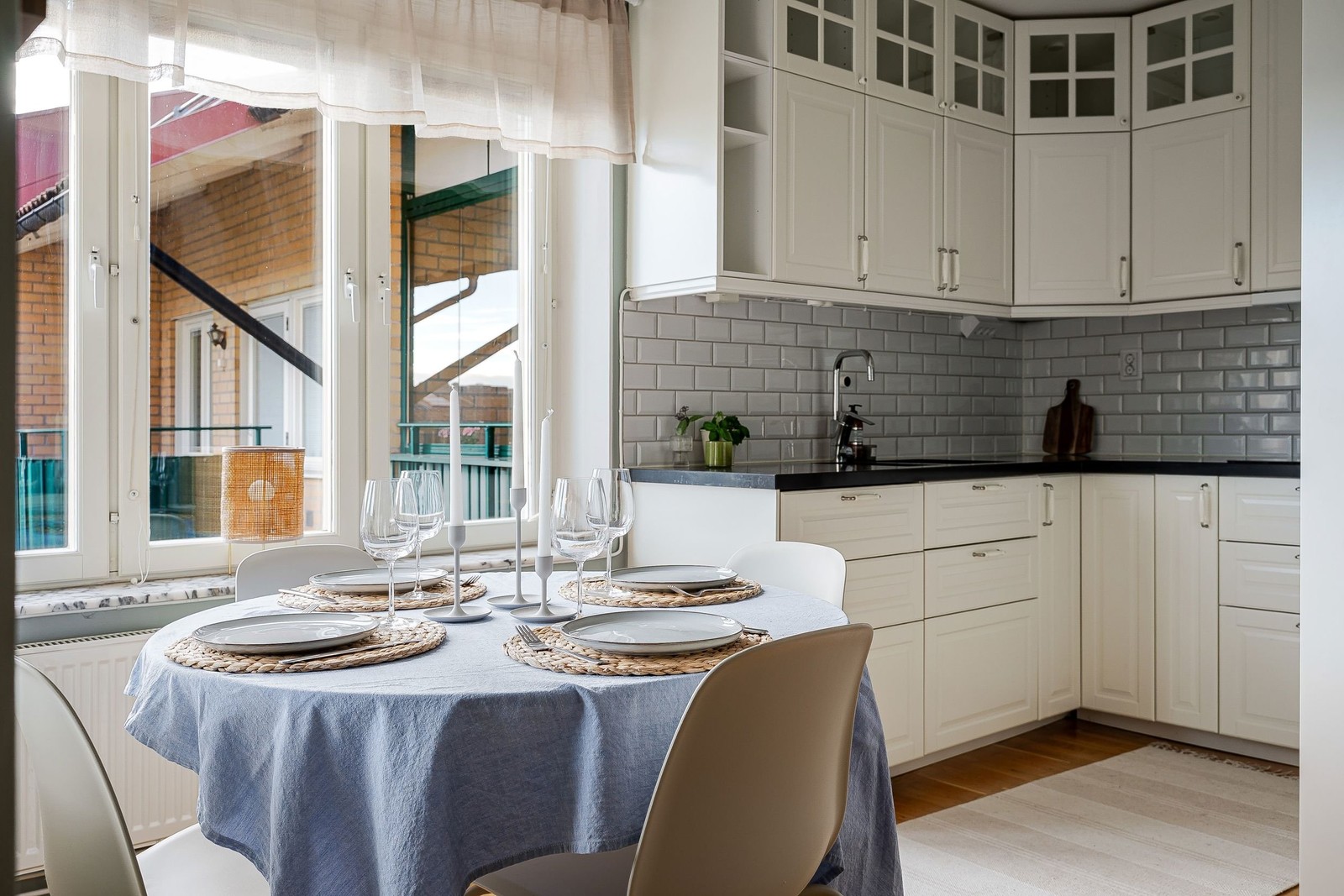 Den generösa balkongen bjuder på morgonsol och en rofylld utsikt över föreningens välskötta innergård, med gott om plats att inreda efter egen smak. Tack vare bostadens många fönster flödar ljuset in och skapar en ljus och inbjudande atmosfär som måste upplevas på plats.