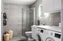 Badrummet är en fröjd – helkaklat med värmande klinkergolv - allt i en vacker grå ton, tvättmaskin och torktumlare samt förvaring i väggskåp och kommod.