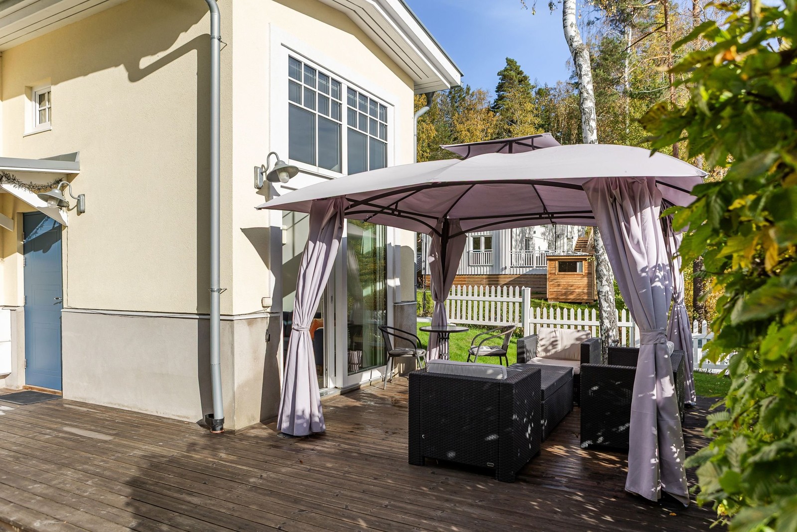 En fantastisk uteplats med stor trädgård. Den perfekta platsen för att avnjuta en god grillad middag i goda vänners lag. Här finns gott om plats för möblering efter eget tycke och smak. Den perfekta trädgården för dig med grönafingrar.