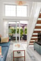 Vardagsrum med öppen och social planlösning mot köket. Här finns plats för matbord och sällskaps del. Från vardagsrummet når ni även bostadens fantastiska uteplats och trädgård samt trappa upp till loftet.