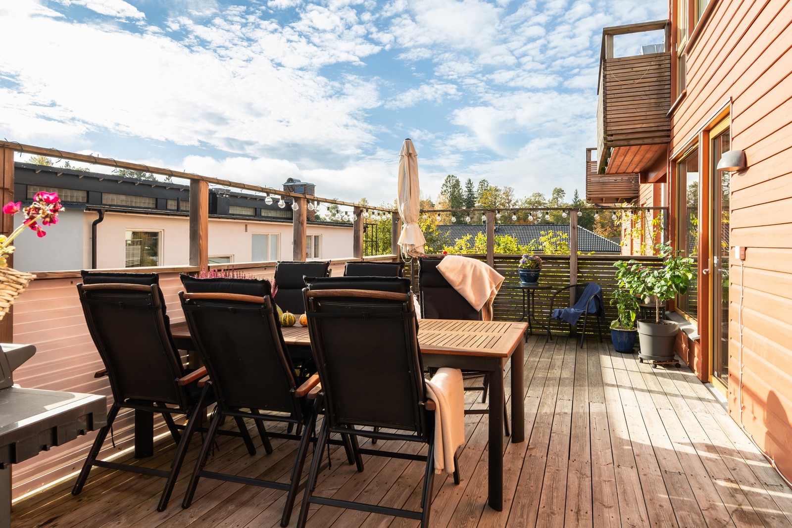 Stor solig uteplats med insynsskyddat läge.