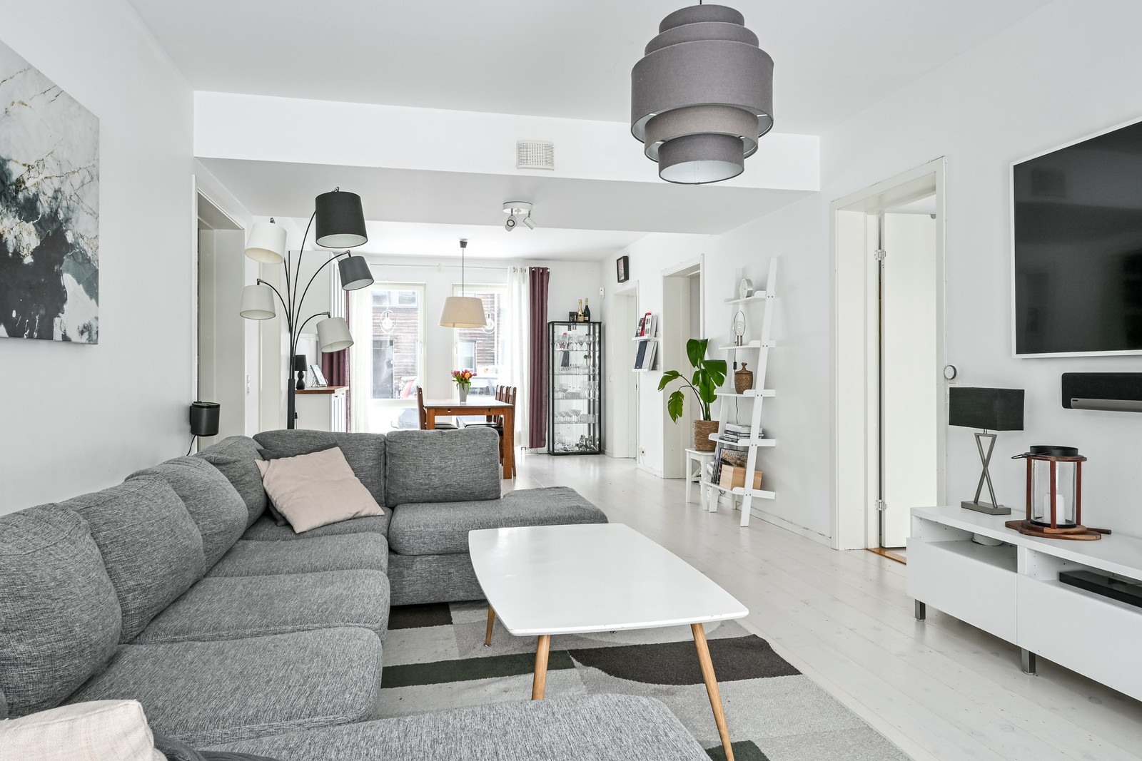 • Ljusa golv förstärker känslan av rymd och gör att hela lägenheten känns varm och välkomnande.
