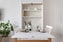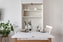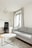 Ljust allrum i öppen planlösning mot köket. Parkettgolv och målade väggar.