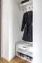 Entré med parkettgolv, ljust målade väggar och tre garderober.