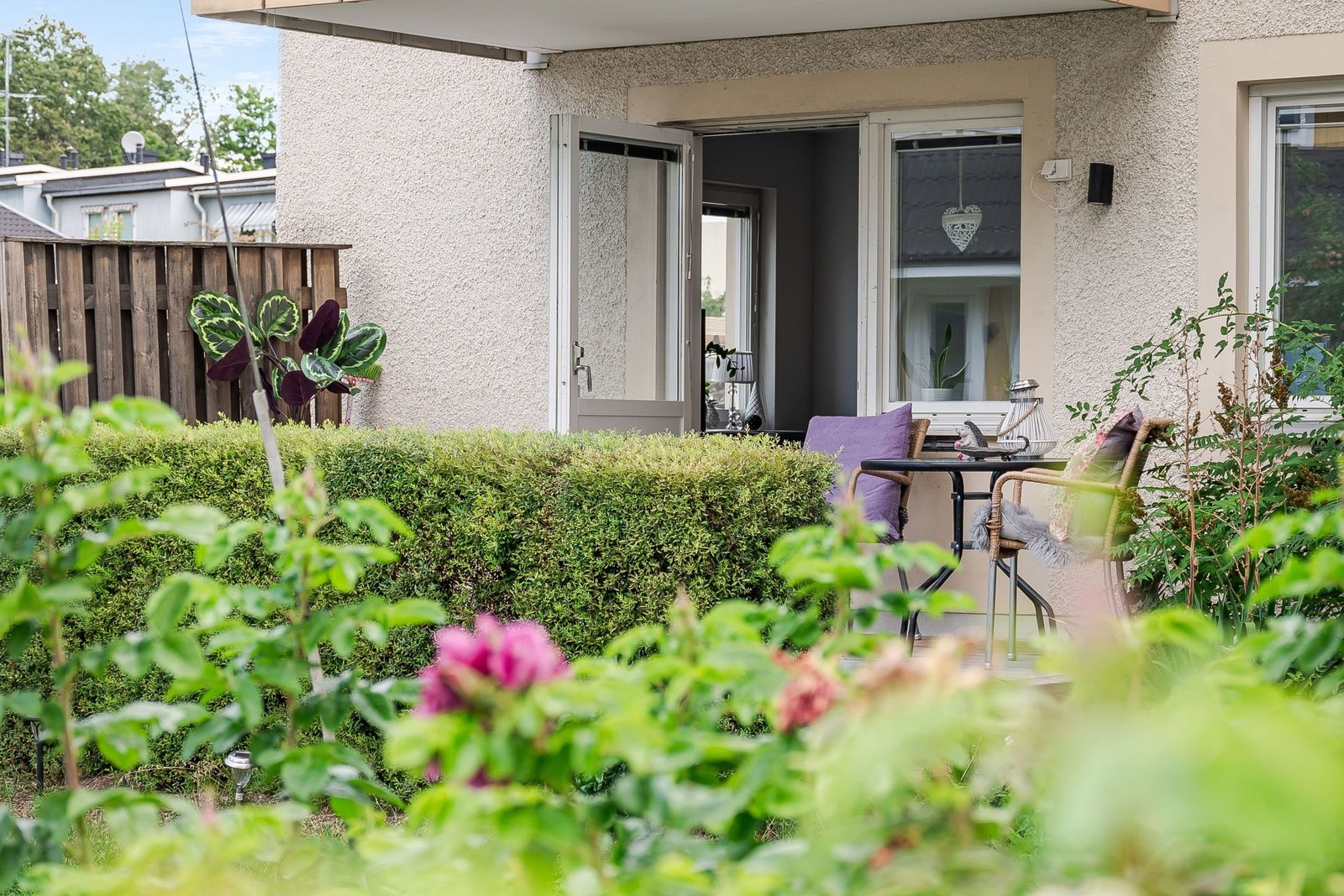 Mitt i villaidyllen finner du denna charmiga bostad om 3 rok, bekvämt belägen på markplan med egen uteplats.