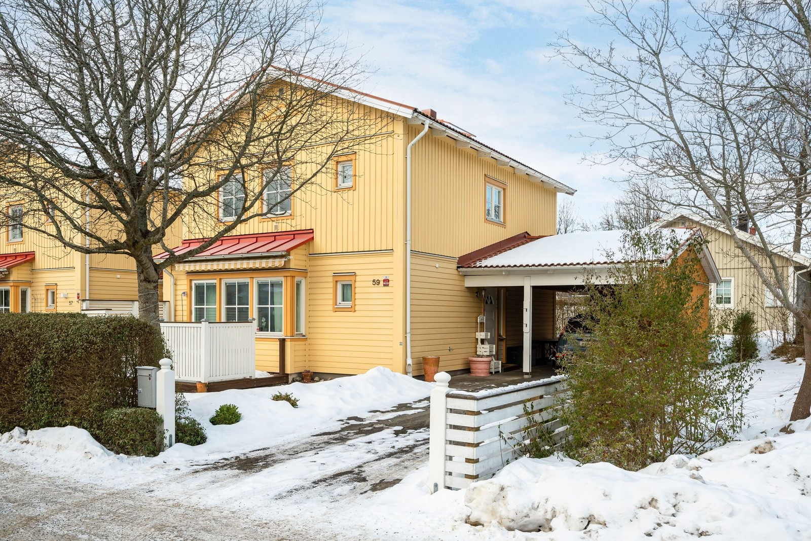 Familjevänligt kedjehus med två uteplatser i attraktiva Snättringe
