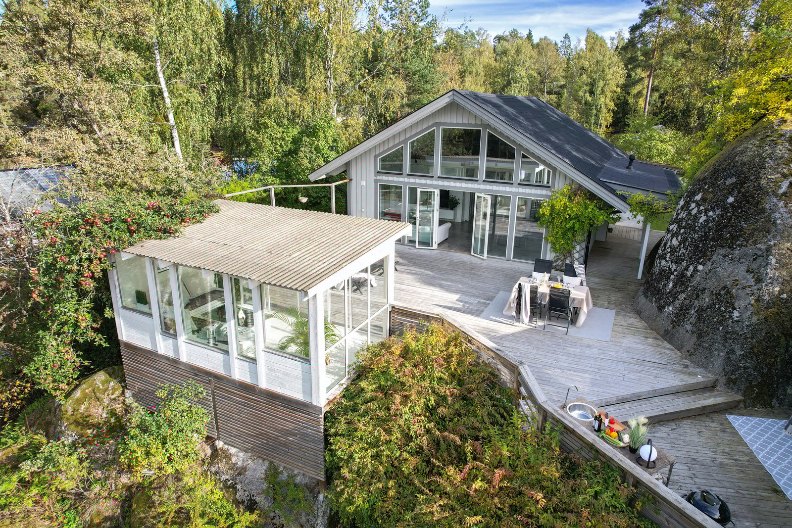Unik villa i tre plan med generöst ljusinsläpp, öppen planlösning, modern standard och insynsskyddad tomt. Stor altan med utekök och inglasat uterum, perfekt för året runt-bruk. Separat gästhus med full utrustning – idealiskt för uthyrning eller gäster. Vackra klippor, fruktträd och bärbuskar ramar in trädgården. Endast 10 min till Farsta C, nära naturreservat, bad och friluftsliv. Ett hem där naturen möter komfort – året om.