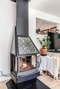 Ljust rum med öppen planlösning, mot kök. Här finns plats att möblera med en mysig soffa. en ekonomisk och värmande braskamin klädd med täljsten för att spara lite el. Laminat på golv samt ljusa vägar. Utgång till stor solig altan i skönt söderläge.