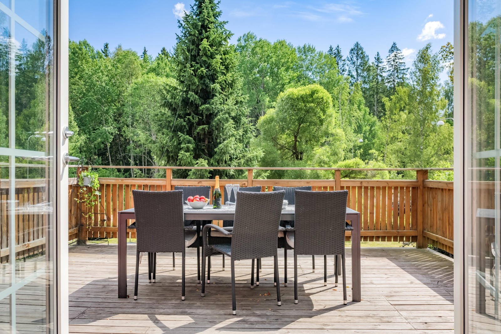 En generös altan i söderläge bjuder in till grillkvällar, solbad eller bara ren avkoppling. Här njuter du av solen från morgon till kväll, omgiven av naturens skönhet.