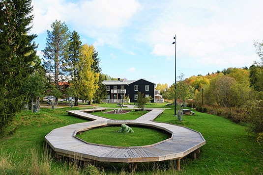 Kommunen har byggt en lekplats på Småbrukets Backe, för större och minde barn, med naturpedagogik som tema. Lekredskap och möblering är främst gjord i trä. Området är södervänt mot ängen och har bakåt en tätare skogsbacke, där två små fina lekhus är placerade. I den västra delen finns sandlådor och gungdjur. I den östra delen finns för de större barnen kompisgungor, balansblock och ljudleksaker samt torn med rutschkana.