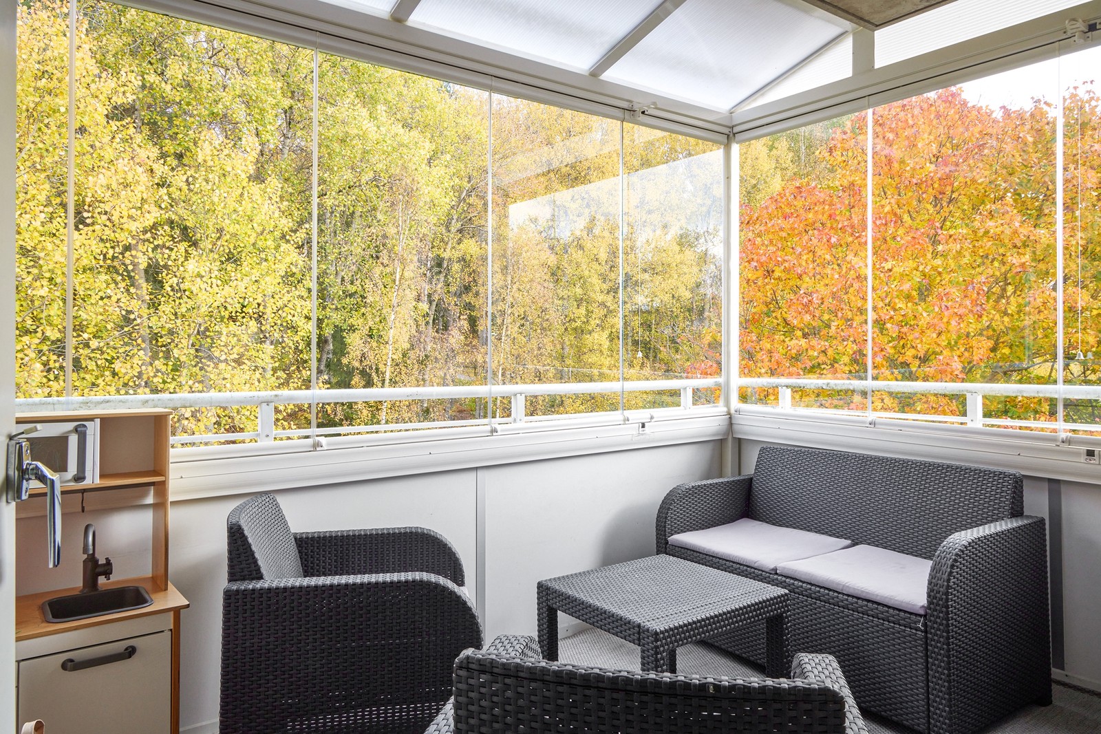 Att ha tillgång till utevistelse från lägenheten är något som många drömmer om. I den här trean finns en stor, charmig och ljus balkong som verkligen höjer livskvaliteten för dig som boende. Här kan du njuta av härliga kvällar med både familj och vänner. Balkongen nås från vardagsrummet och erbjuder lättmöblerade ytor, Bra solläge och plats för soffgrupp.