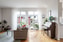 Härligt vardagsrum med flödande ljus tack vare stora fönsterpartier från golv till tak.