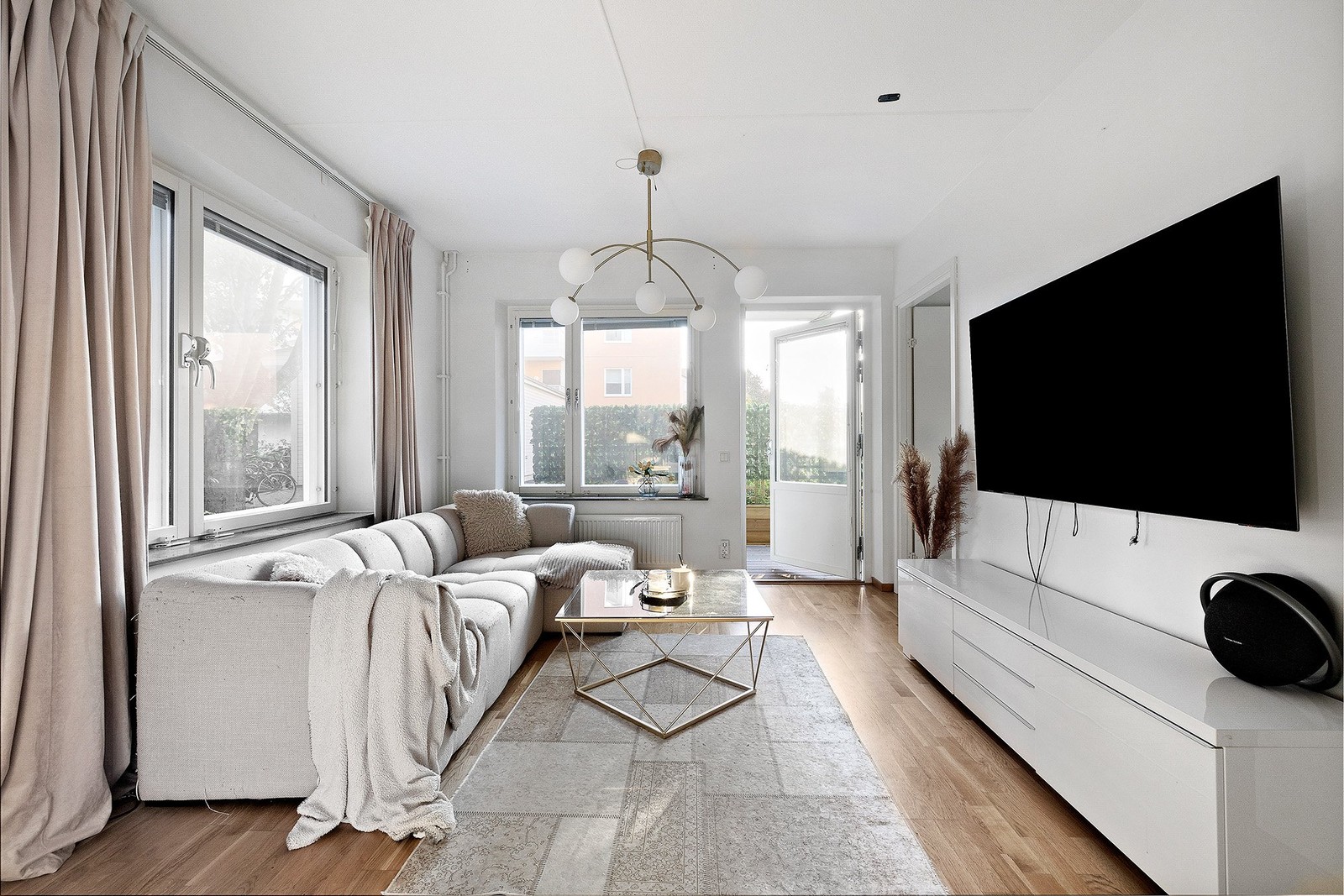Stilren tvåa med flexibel extra rumsyta och grönskande uteplats!