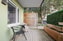 Från vardagsrummet nås uteplatsen som ramas in av höga planteringar. Det gröna insynsskyddet skapar en mysig atmosfär och en privat känsla, samtidigt som uteplatsen ligger avskilt från gatan.