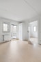 Vardagsrummet har parkettgolv och ljusa väggar. Rummet är rymligt med plats för både soffgrupp och övrig möblering. Fönsterpartiet med två fönster ger ett bra ljusinsläpp.