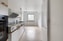 Köket har ljusa skåpsluckor med träfärgade handtag och arbetsytor längs ena sidan. Den maskinella utrustningen består av spis med ugn, fläkt, diskmaskin samt kyl och frys. Diskbänk med ho är placerad i arbetsdelen. I den inre delen av köket finns plats för matbord intill fönster, med mönstrad tapet på väggarna och golv i ljus ton.