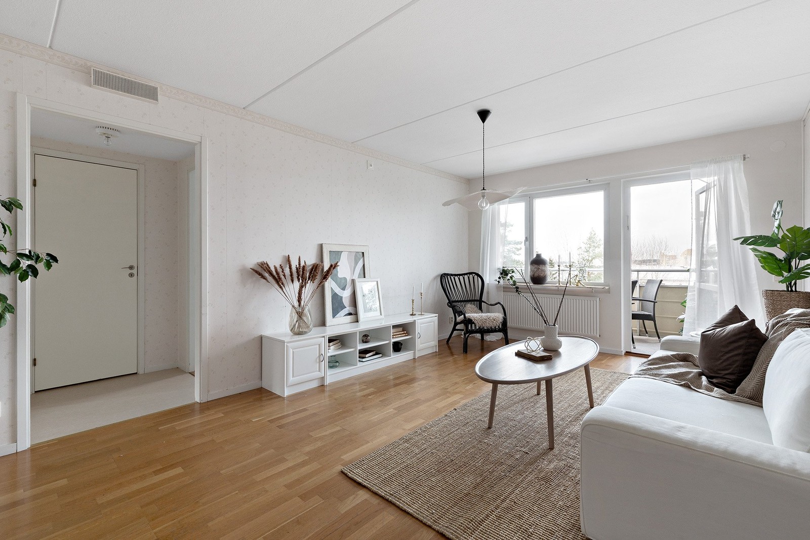 Lägenheten har ett ljust vardagsrum med utgång till balkong, två sovrum med bra storlek samt ett extra rum som möjliggör den flexibla dispositionen. Planlösningen är genomtänkt och anpassad för både vardagsliv och förändrade behov över tid, vilket gör detta till ett boende som fungerar lika bra för familjen som för den som söker extra arbetsyta i hemmet.