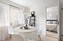 Utrymmet har ljusa väggar och plastmatta på golv. Förvaring genom hyllor och klädstång. Utrymmet är placerat mellan båda sovrummen.