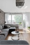 Vardagsrummet är bostadens hjärta där stora fönsterpartier släpper in ljus från lunch till kväll. Härifrån nås balkongen som blir en högt belägen oas med gott om plats för både matbord och loungemöbler.