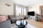 Vardagsrum med laminatgolv i ljus ton och målade väggar. Rummet erbjuder generösa ytor med plats för både soffgrupp och matplats. Stort fönsterparti ger ett fint ljusinsläpp och bidrar till en luftig känsla. Planlösningen är lättmöblerad och möjliggör flexibel möblering efter behov.