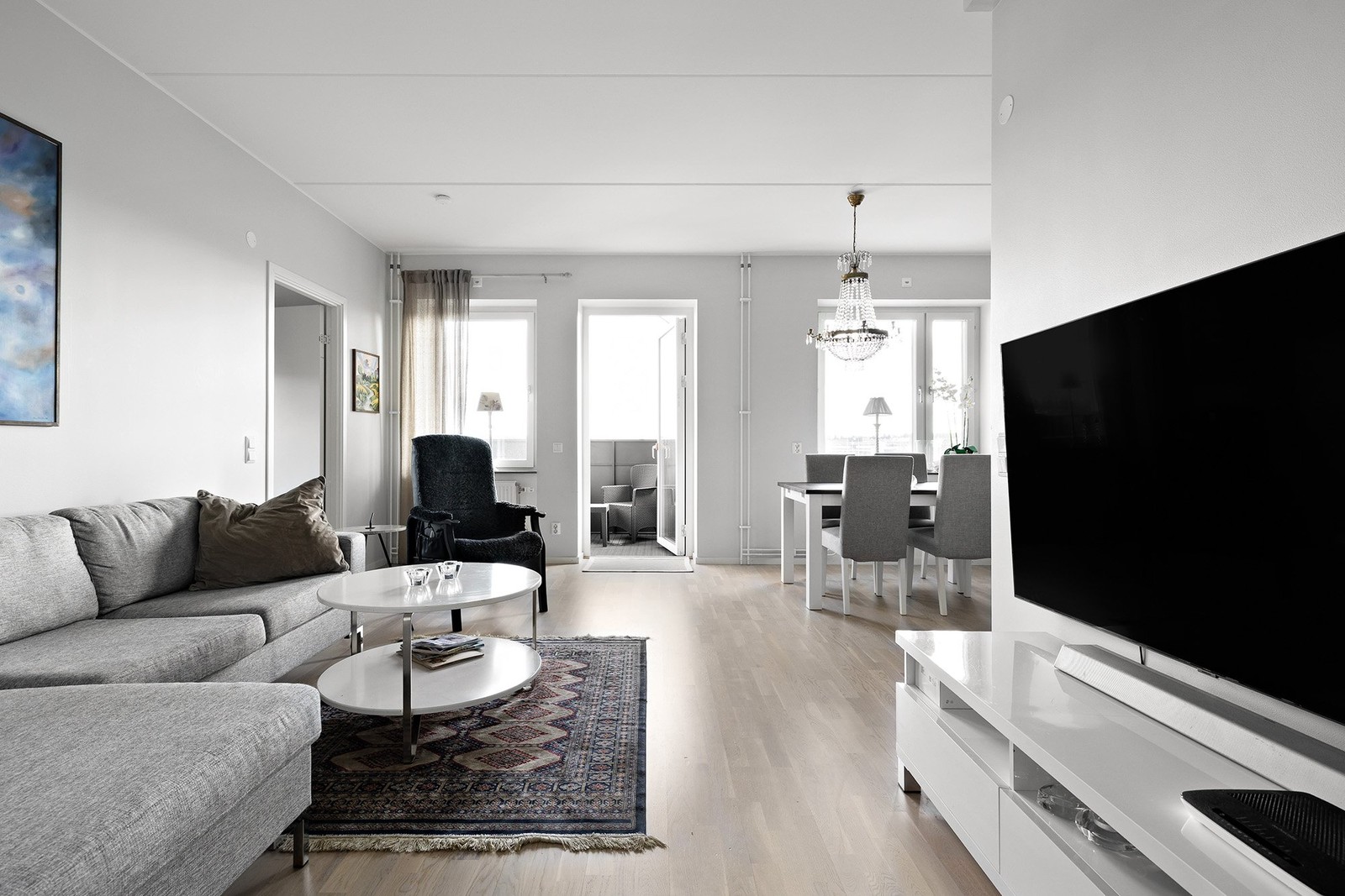 Välkommen till Gjutarplan 2, en stilren och välplanerad trea med öppen planlösning, två rymliga sovrum och en solig balkong i högt läge.