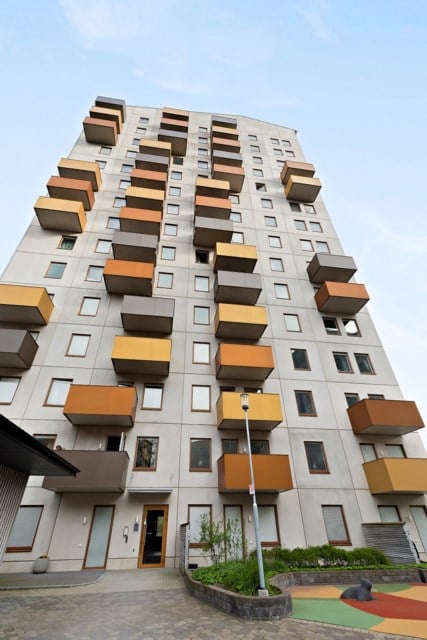 *Lägenheten ligger på plan 1 i ett förhöjt läge. Det innebär markkontakt endast mot innergården, där uteplatsen finns i direkt anslutning, medan övriga fönster ligger högre upp. Kombinationen ger både känslan av markplan och tryggheten av ett upphöjt läge.