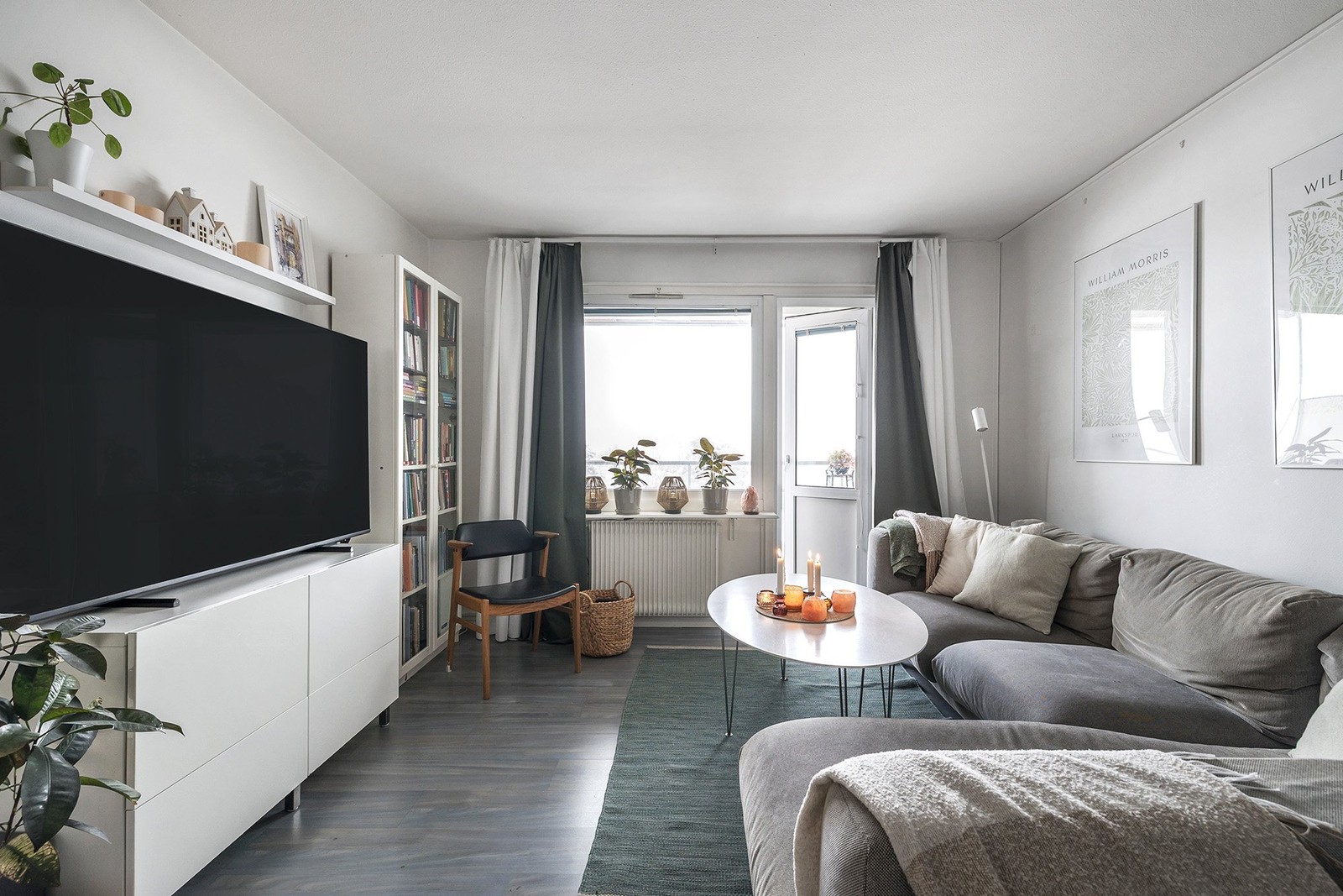 Köket är stilrent och välplanerat med generösa arbetsytor och gott om förvaring som gör vardagen smidig. Här finns plats för matgrupp och trevliga stunder från morgonkaffe till sena middagar. Vardagsrummet erbjuder luftiga ytor med god möblerbarhet och rymmer enkelt både soffgrupp och matsalsdel. Härifrån nås även den rymliga balkongen i soligt läge som under årets varmare månader fungerar som en naturlig förlängning av bostaden och en perfekt plats för avkoppling.